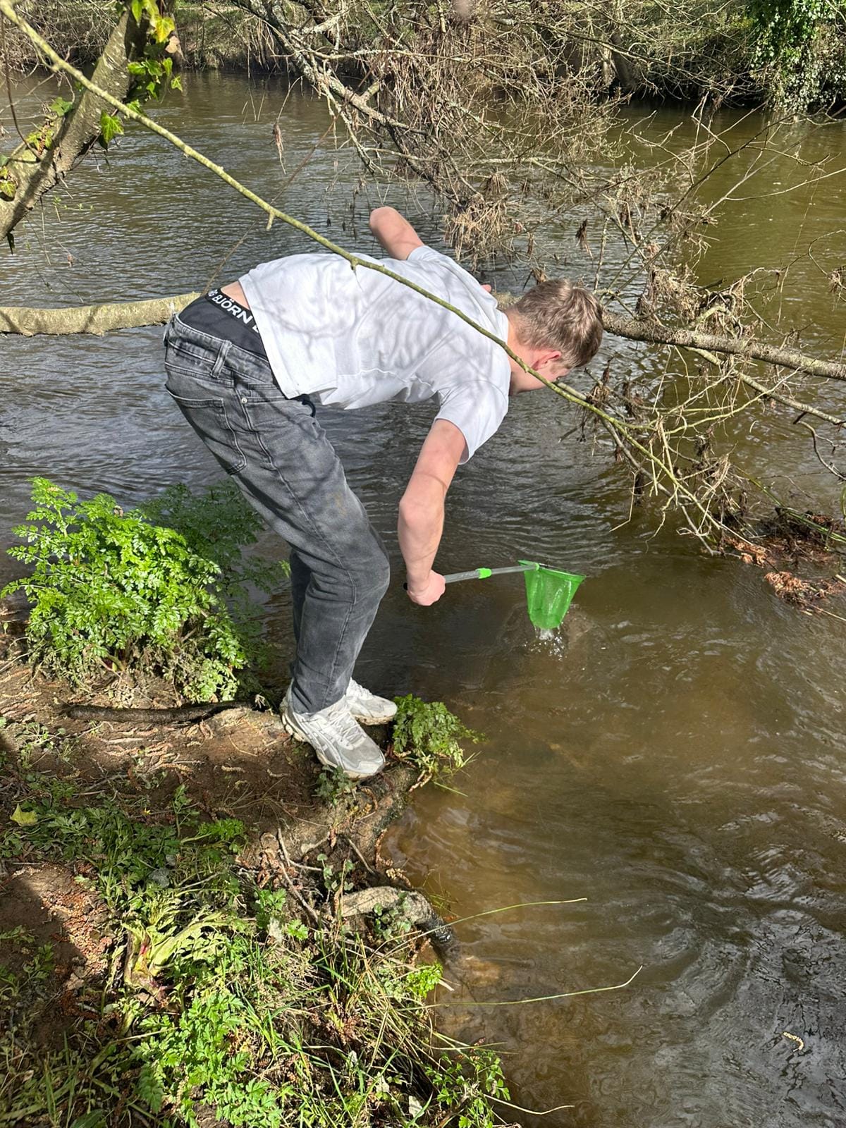 Their walk continued along the riverbanks to the old Breton washing site, once an essential part of local life. Later, the pupils examined the river’s water quality firsthand by gathering a small sample of riverbed material and studying the river life it contained—an eye‑opening look into local biodiversity and the general good health of the river.