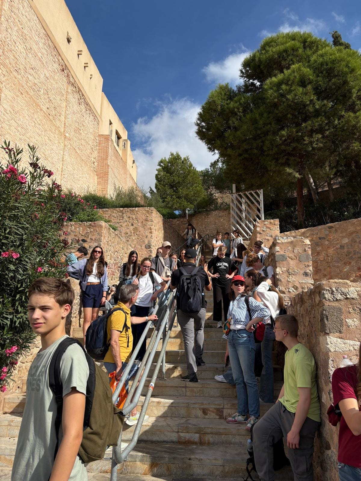 After the tour, pupils could choose between different cultural activities. Some explored the street murals, some took the Ascensor Panorámico to see the city from above, and others visited the Civil War Shelter Museum to learn about life during the war. The pupils were also given a packed lunch and encouraged to picnic together. This was another simple and relaxed moment where they could talk, share experiences, and get to know each other better — though a few pupils also had an unexpected close encounter with the local wildlife that likes to wander the streets of Cartagena!