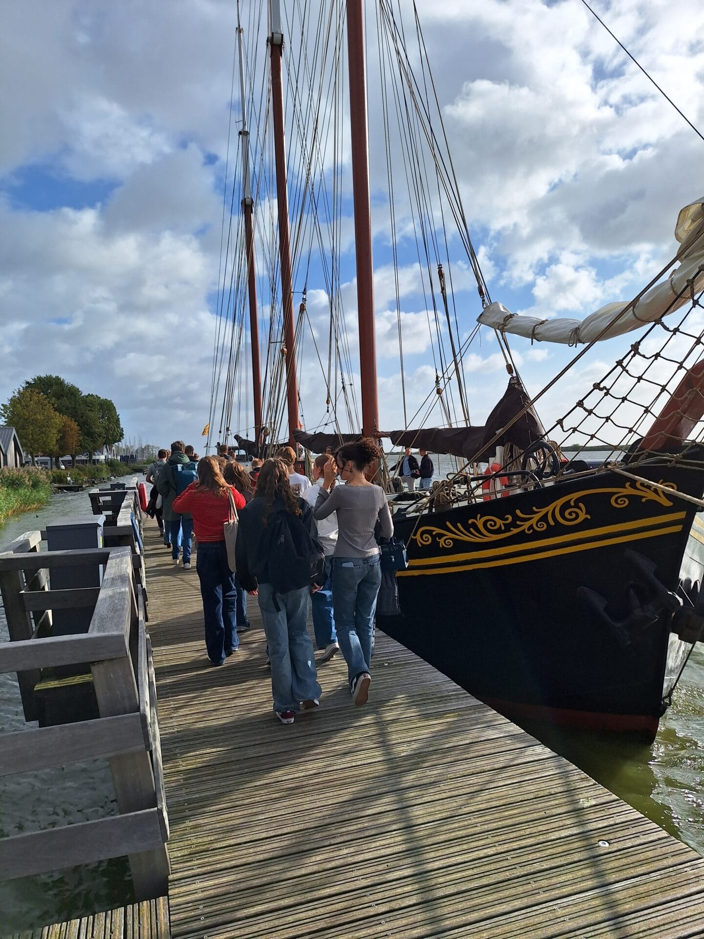 The RSG Enkhuizen Cambridge English department has been working together with the Zuiderzee Museum for the past ten years to create international and English based educational projects for our students. Recently one of our students won an international publishing prize with her short story that was written for one of the Cambridge English projects in the museum. Today 16 students with the two Cambridge English teachers Kate Koning and Femke Pieters were filmed on sight to create a video for one of the educational VO programmes that are developed by the educational department of the museum. In stormy winds they explored ancient ships, ye old sweet shop, various arts and crafts such as how to tie a good knot and they went in search of the tiniest room on ship and in the village.